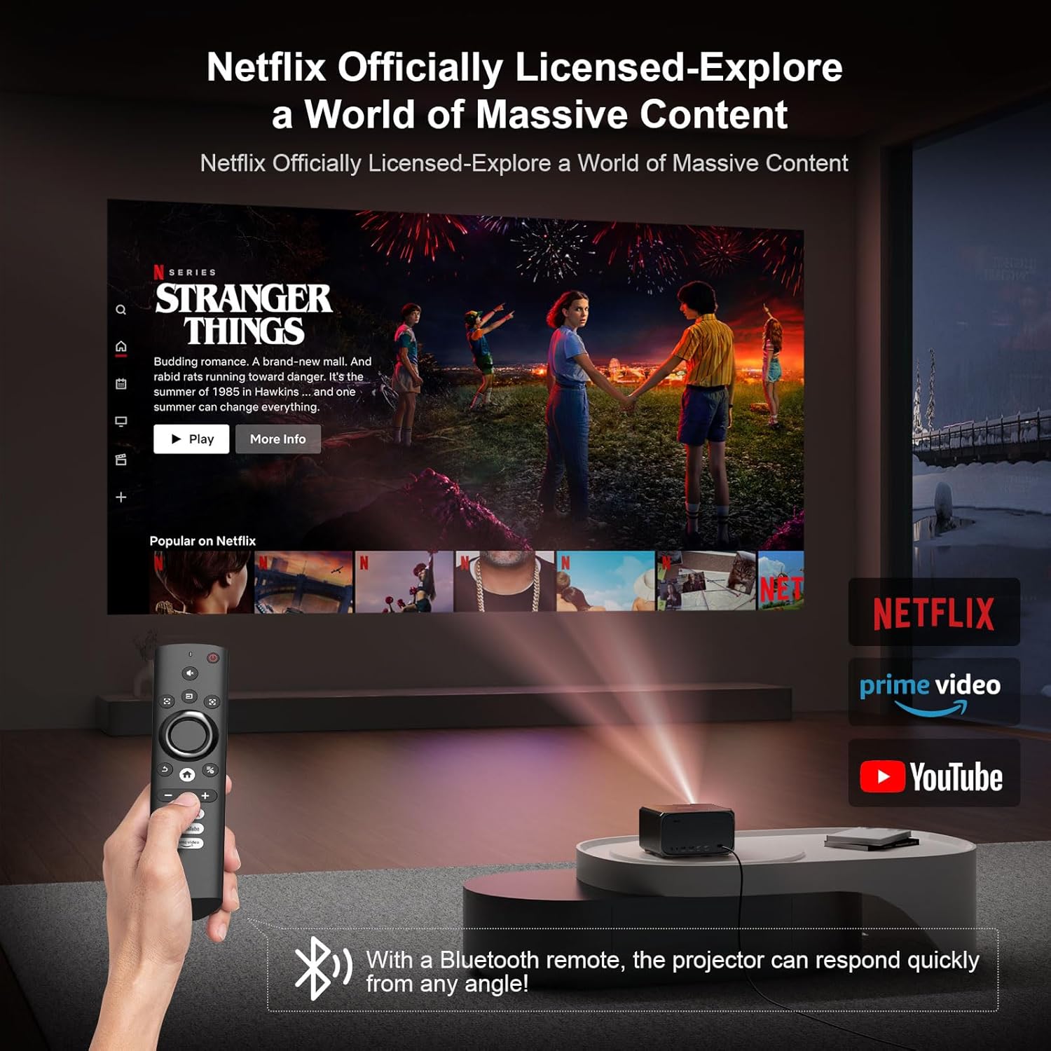 Notre interface inclut des ports HDMI, USB, AV et une sortie Audio 3,5 mm pour une compatibilité avec les consoles PS5, PC et lecteurs DVD. Le système Linux embarqué possède les licences officielles pour Netflix, YouTube et Prime Video, accessibles directement depuis la page d’accueil personnalisable. La partie sonore est certifiée Dolby Audio, produisant une ambiance acoustique riche et dynamique adaptée aux films et concerts.