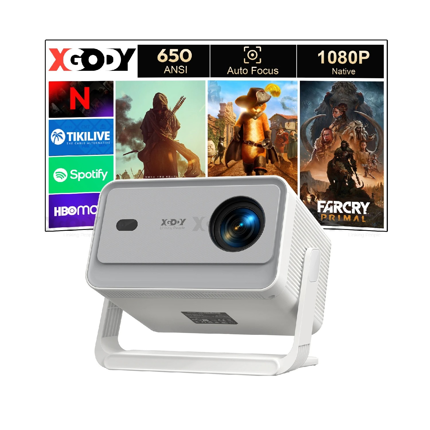 Vidéoprojecteur LED Full HD 1080p, 650 ANSI Lumens, Autofocus et Android