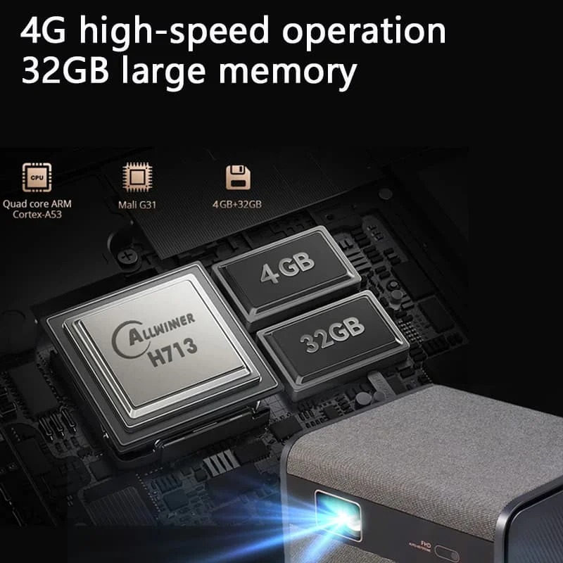 Le moteur optique délivre une résolution native de 1920 x 1080 pixels, assurant une netteté précise sur l’ensemble de la surface de projection. Notre processeur graphique Mali-G31 assure la compatibilité avec les flux 4K Ultra HD à 60 fps via les codecs H.265 et VP9. Le taux de contraste s’élève à 20 000:1, garantissant des noirs profonds et une colorimétrie stable pour les contenus cinématographiques.