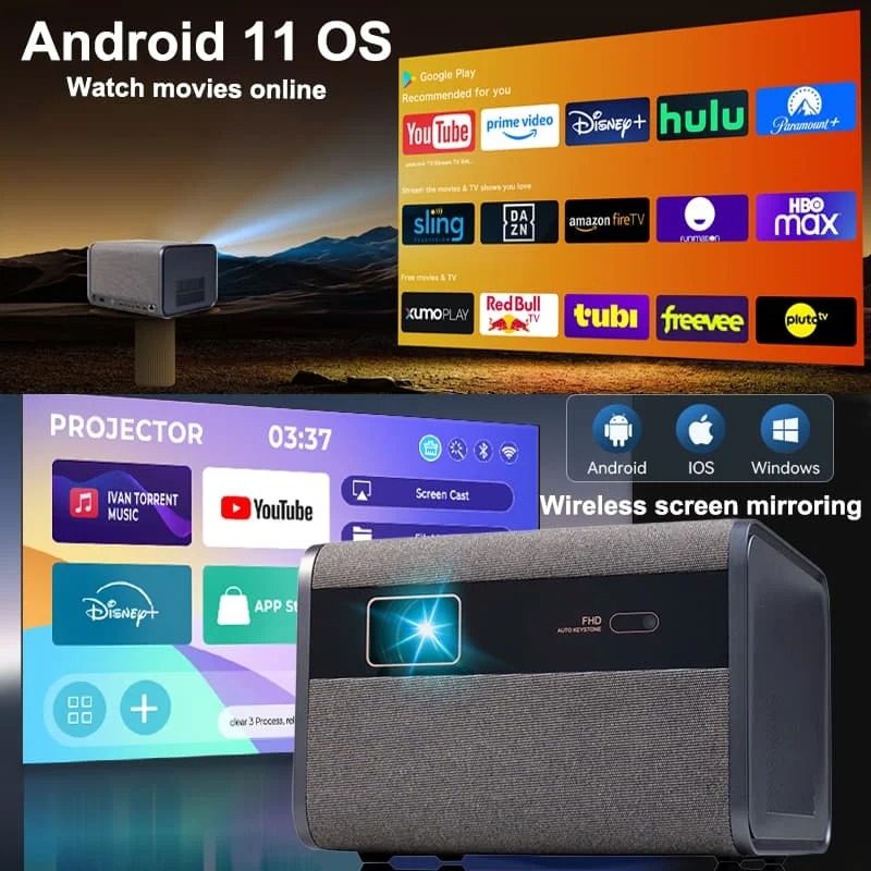 Projecteur LCD Full HD 1080p, 600 ANSI Lumens, Android TV et Support 4K pour Home Cinéma