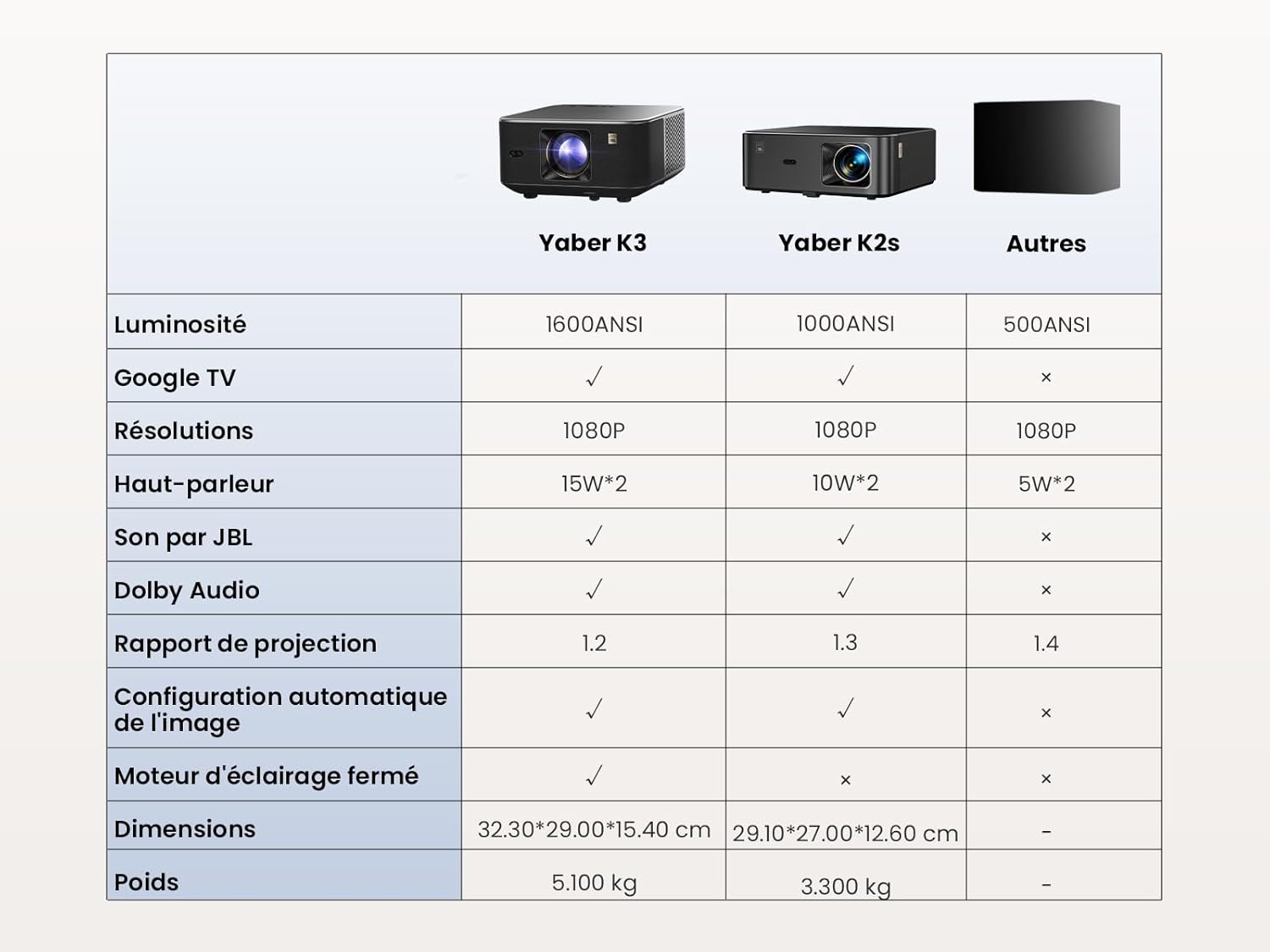 Ce modèle associe une résolution Full HD 1080P, une compatibilité 4K décodée, une luminosité de 990 ISO lumens, une plateforme Google TV et un système audio 30W JBL Dolby Audio pour une expérience complète. Il offre une connectivité WiFi 6, une mise au point automatique, une correction Keystone intelligente et une utilisation fluide au quotidien. Ce Vidéoprojecteur 800 Euros représente une solution multimédia connectée, immersive et polyvalente adaptée au divertissement moderne.