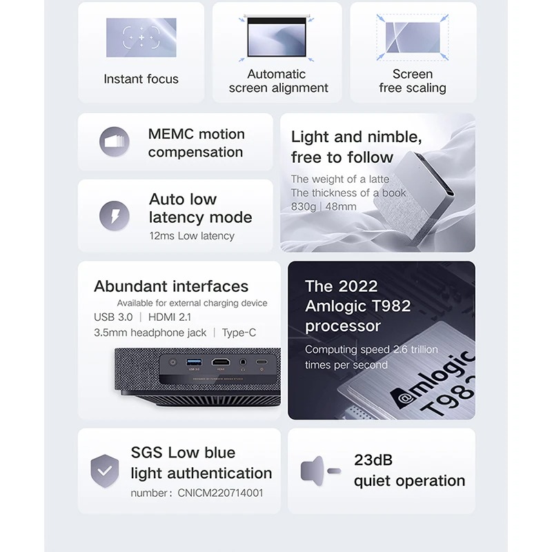 L’installation de notre matériel est simplifiée par un système de correction trapézoïdale automatique qui ajuste instantanément la géométrie de l’image. Cette fonction détecte l’angle de projection et rectifie les déformations sans intervention manuelle de votre part. Le poids plume de 1,0 kg facilite le positionnement sur un trépied ou une étagère, assurant une image parfaitement rectangulaire quel que soit l’emplacement choisi.