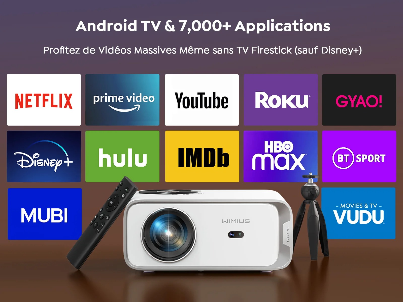 Vidéoprojecteur Full HD 1080P, 23000 Lumens, Android 9.0 et WiFi 6 pour Cinéma Maison