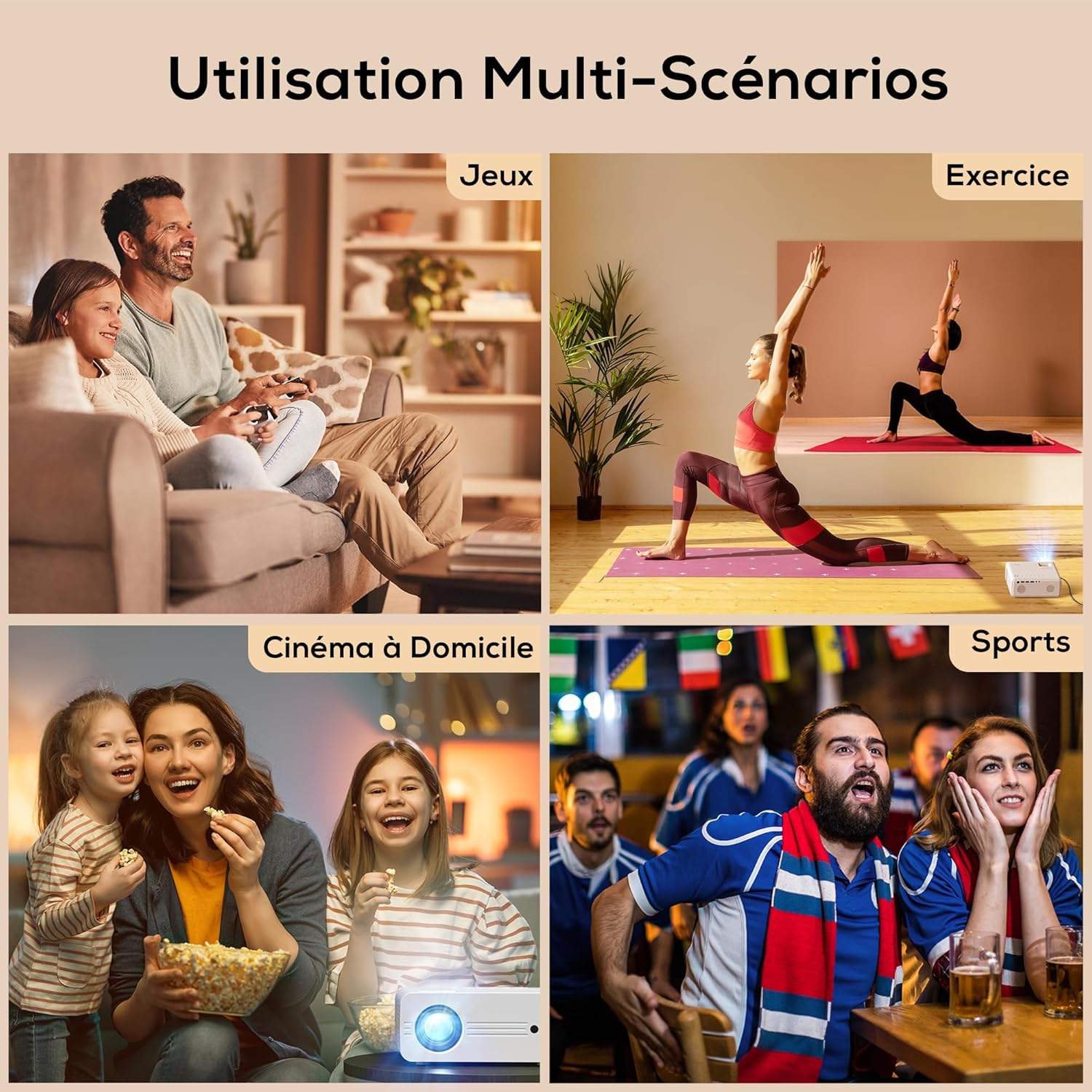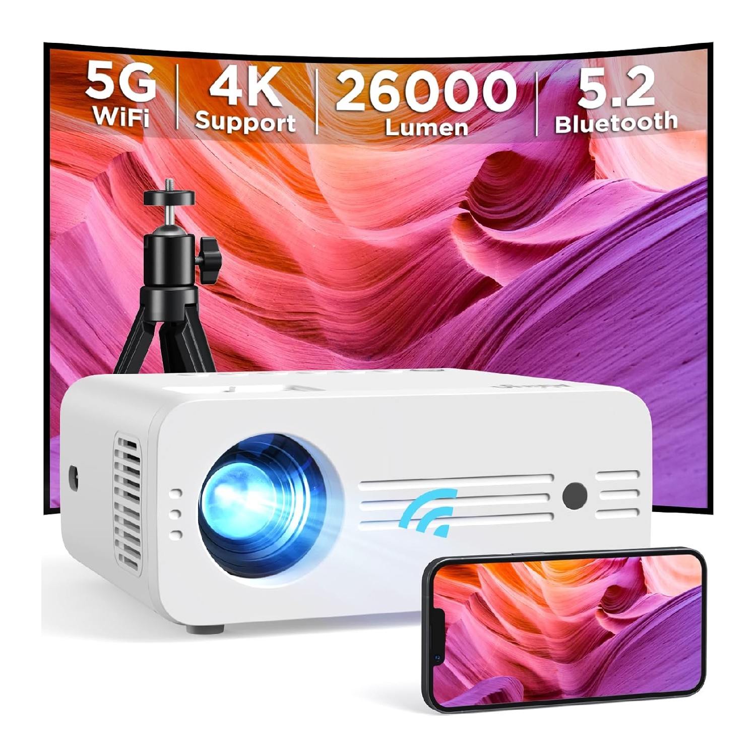 Vidéoprojecteur Full HD 1080P Natif, 26000 Lumens, WiFi 5G et Bluetooth 5.2