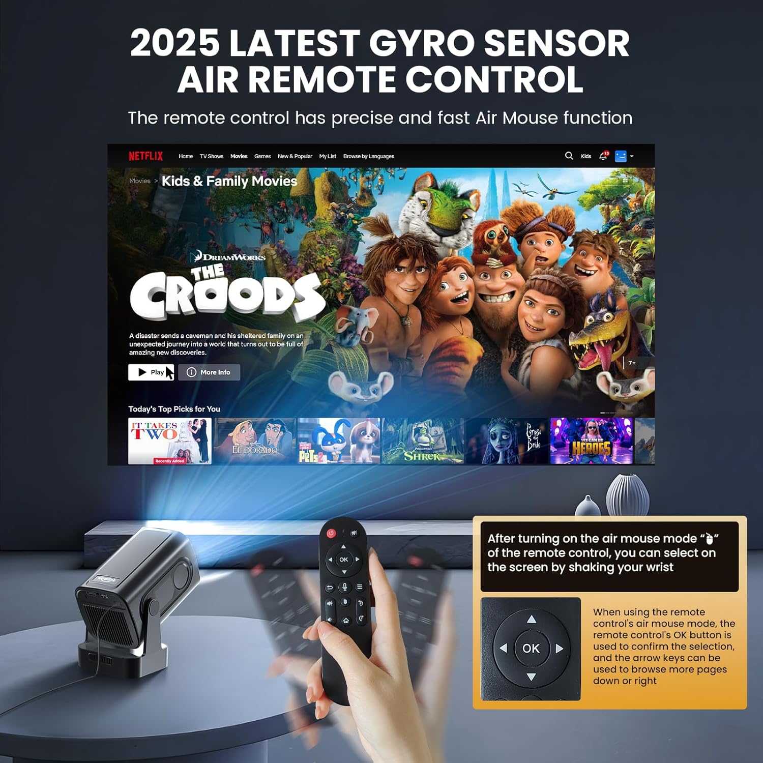 Vidéoprojecteur LCD Full HD 1080P, WiFi 6 et Rotation à 180° pour Home Cinéma