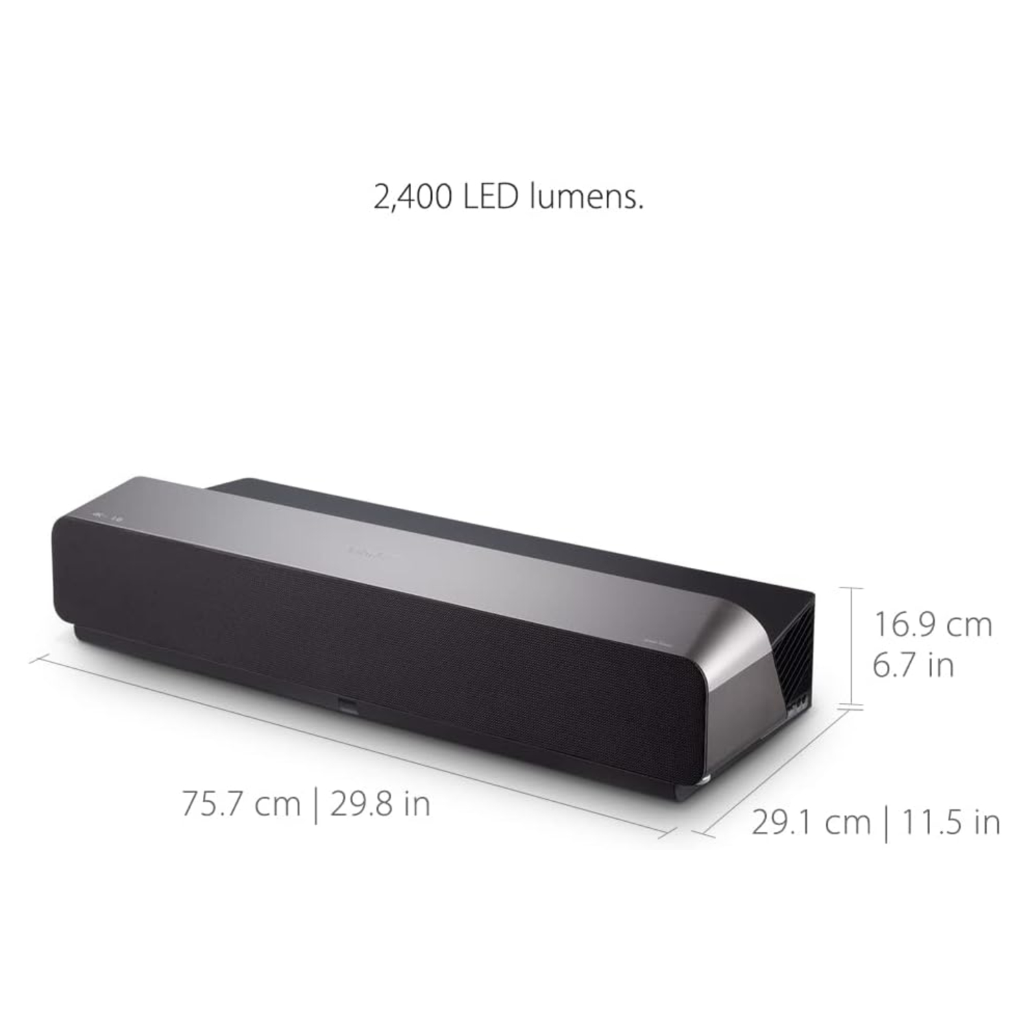 Vidéoprojecteur LED Ultra Courte Focale 4K UHD HDR — 100 pouces à 38 cm, audio Harman Kardon, Wi-Fi 5 GHz, Aptoide intégré