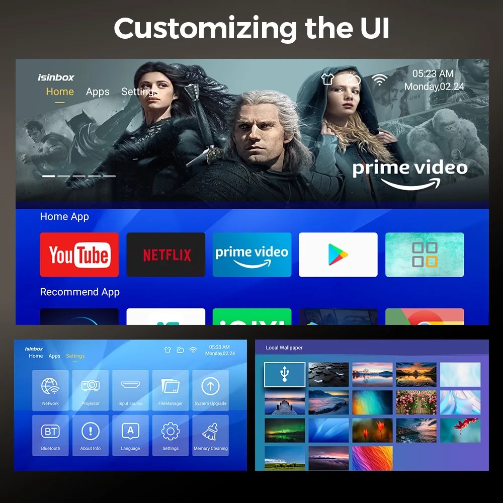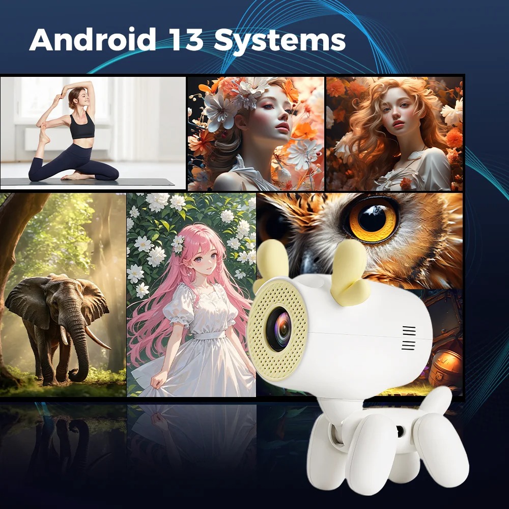Vidéoprojecteur LED HD 720P Android 13.0 avec WiFi 6 et Luminosité de 200 ANSI Lumens