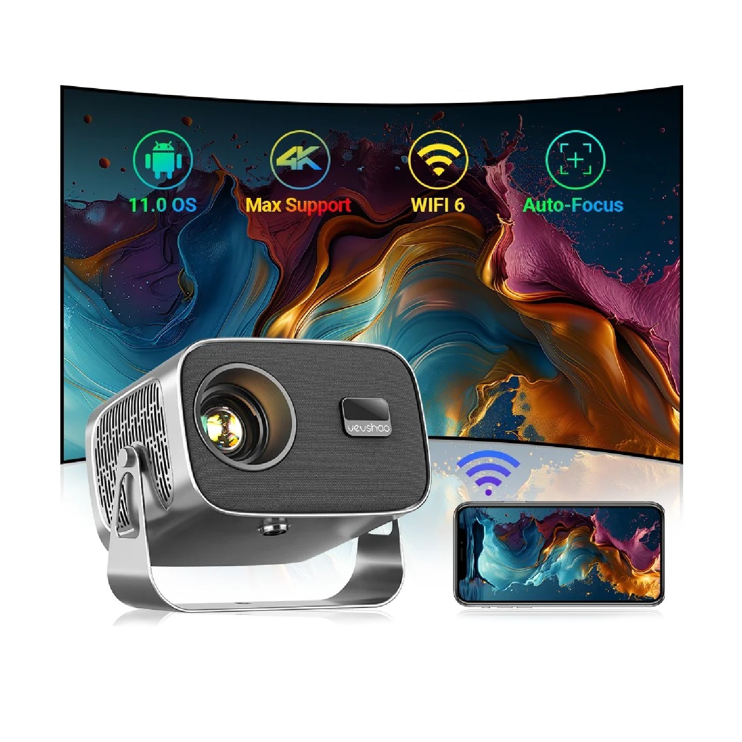 Vidéoprojecteur Focus Électrique LCD 1280×720 — Android 11, Wi-Fi 6, 350 ANSI Lumens, Correction Trapézoïdale Auto