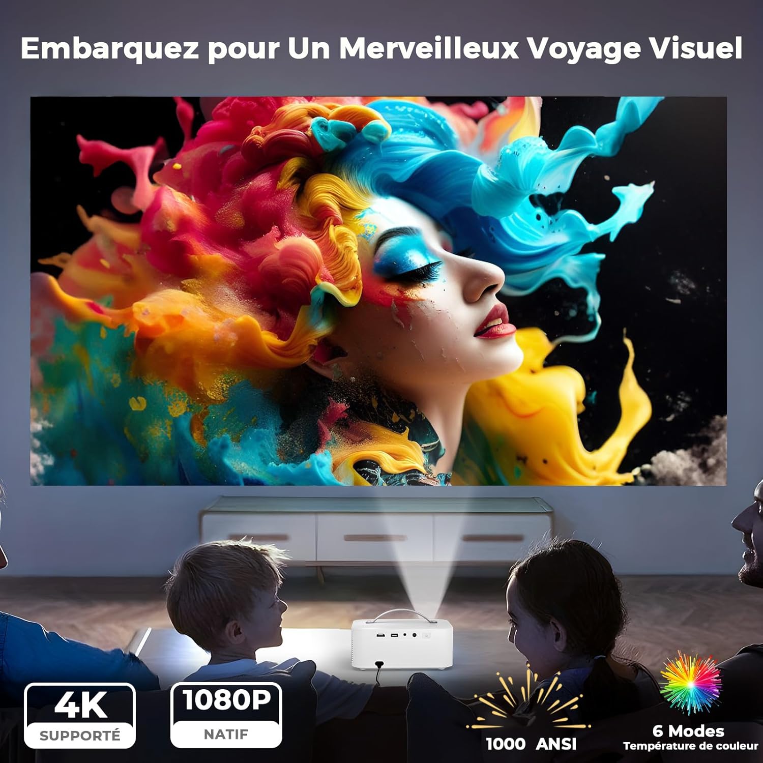 Vidéoprojecteur 1080P Natif, Support 4K, 1200 ANSI Lumens et Système Smart MOVIN