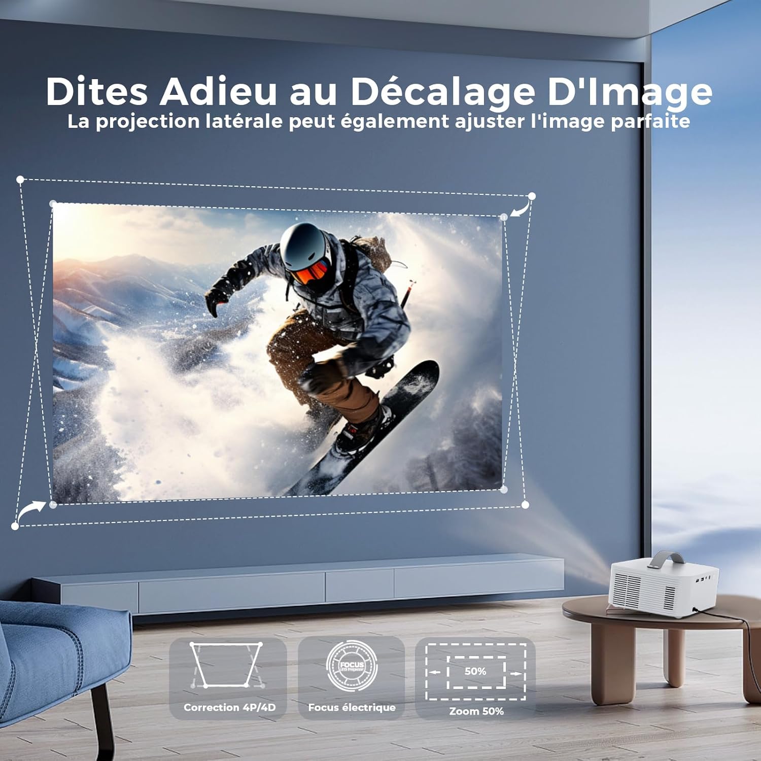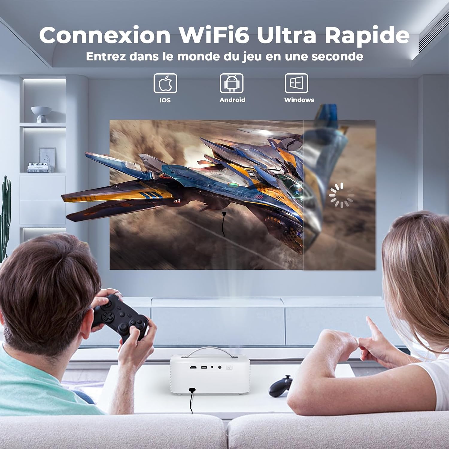 Ce dispositif compact de 1 kg combine une luminosité de 1200 ANSI lumens avec un son Dolby Audio pour une immersion totale. Notre Vidéoprojecteur Gaming 4K assure une connectivité WiFi 6 ultra-rapide et une installation simplifiée par sa correction trapézoïdale avancée.