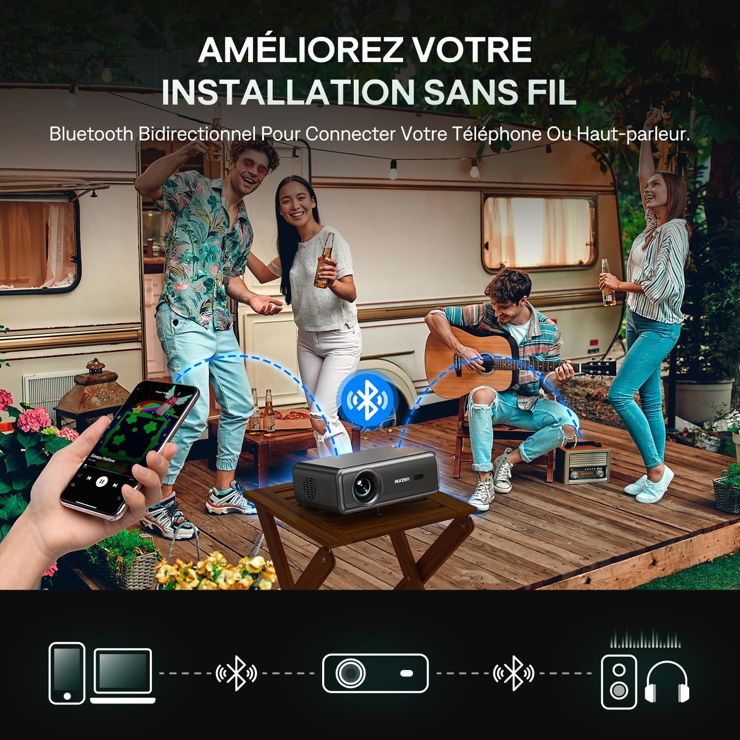Vidéoprojecteur LED 1080P Natif 350 ANSI Lumens avec Smart TV et Autofocus