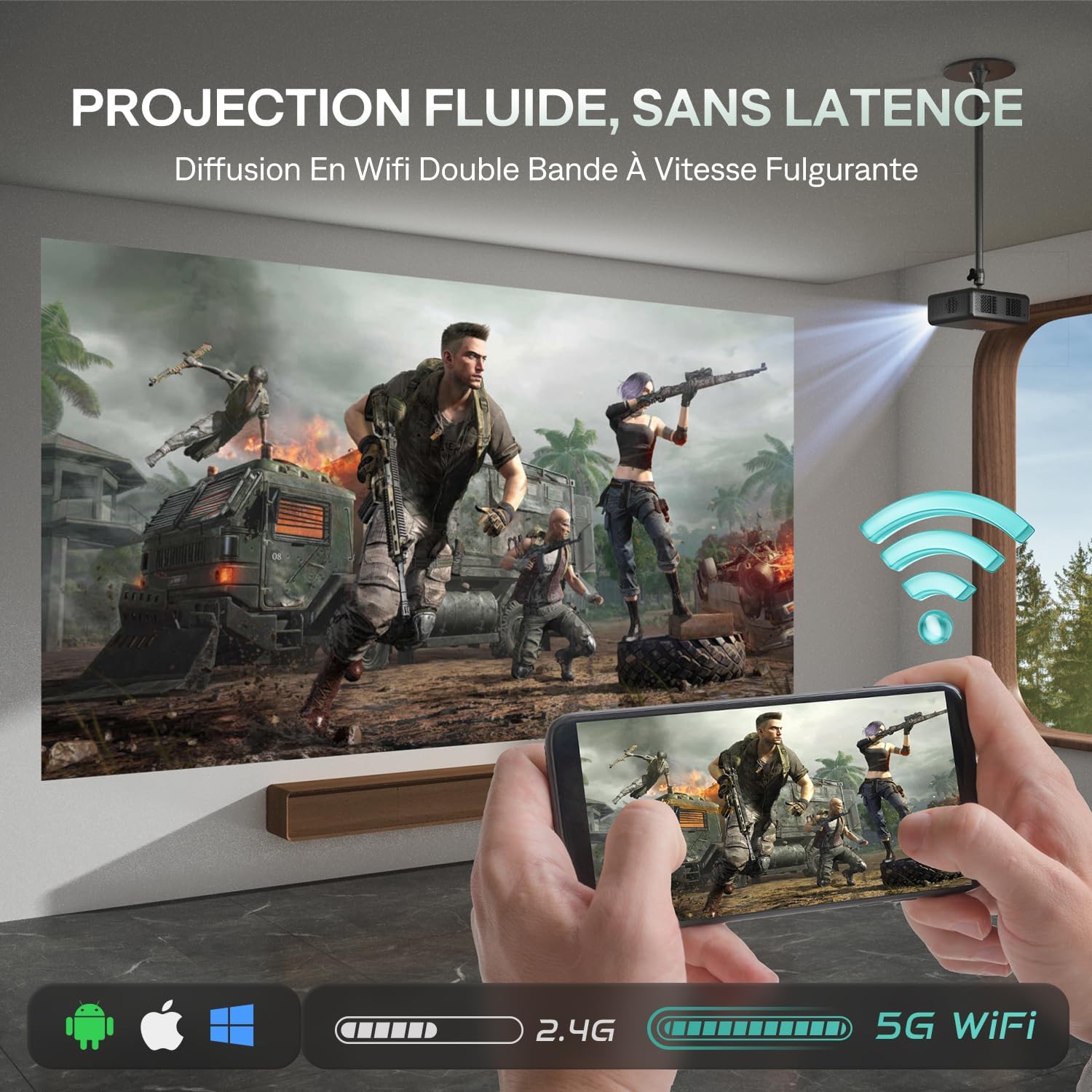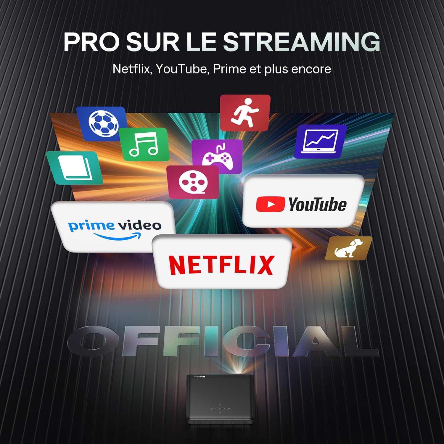 Notre solution de projection intègre un système Smart TV sous licence officielle permettant un accès direct aux applications comme Netflix ou YouTube. Ce modèle compact délivre une image nette en résolution native 1080P tout en assurant une compatibilité avec les flux 4K. L’intégration du Vidéoprojecteur HDR10 garantit un rendu visuel équilibré pour vos sessions de home cinéma, de jeu ou vos présentations en entreprise.