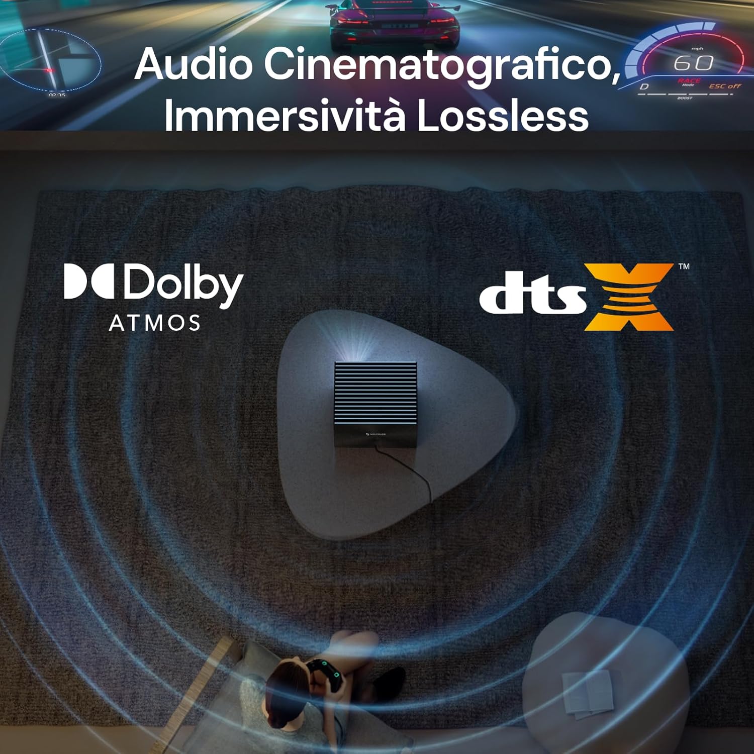 Le système sonore prend en charge les formats Dolby TrueHD Atmos et DTS-HD Master Audio. Cette architecture audio délivre un son spatialisé sans perte pour renforcer l’immersion cinématographique. Les haut-parleurs intégrés complètent la configuration pour une solution tout-en-un efficace.
