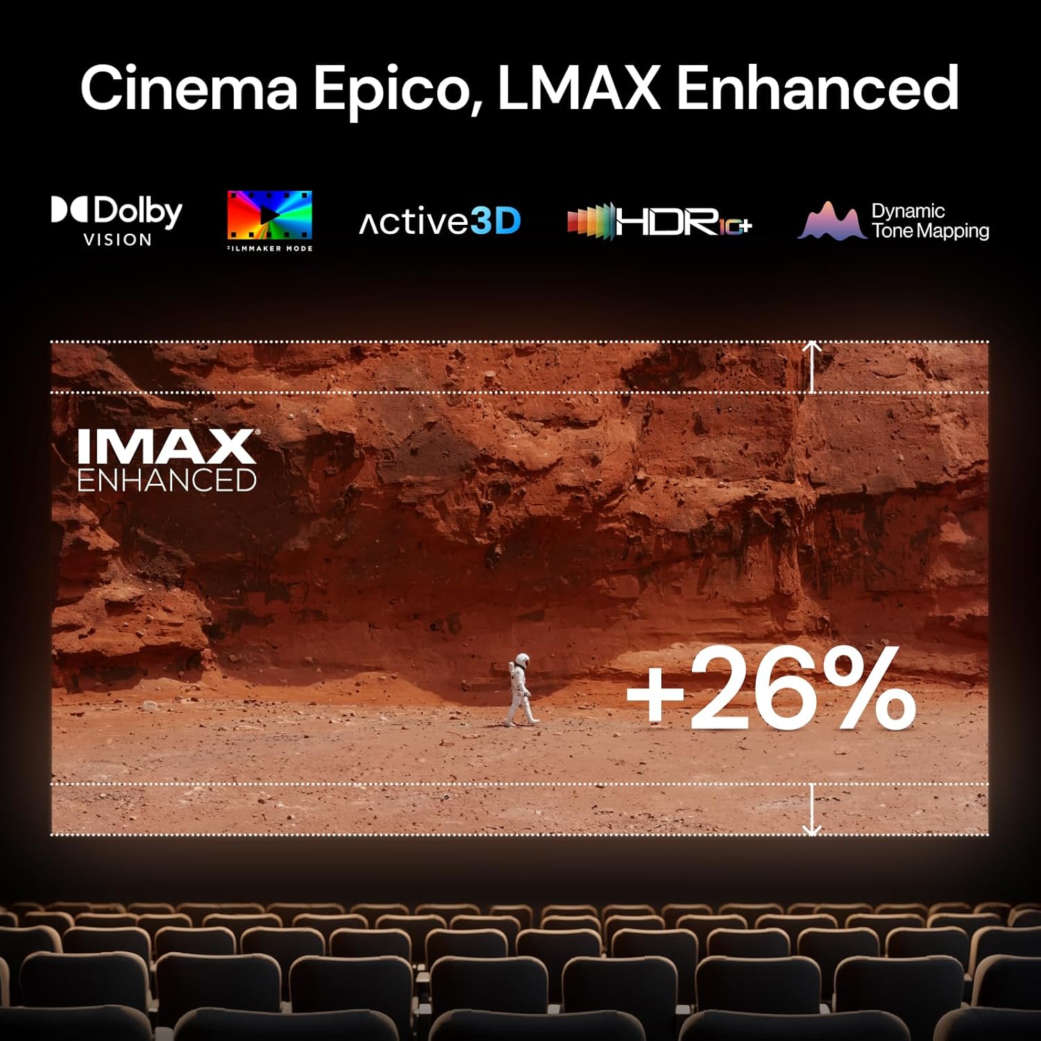 L’appareil supporte les formats Dolby Vision, HDR10+ et bénéficie de la certification IMAX Enhanced. Le processeur intégré gère l’AI 4K UHD pour une mise à l’échelle précise des contenus. La technologie Enhanced Black Level produit des noirs profonds, révélant chaque détail dans les zones sombres de l’image.