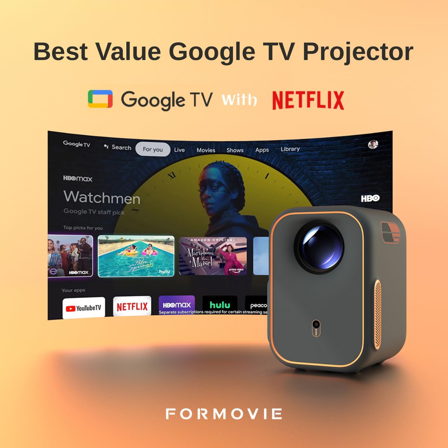 Vidéoprojecteur LCD 1080P Natif, Google TV et Son Dolby Audio pour Home Cinéma