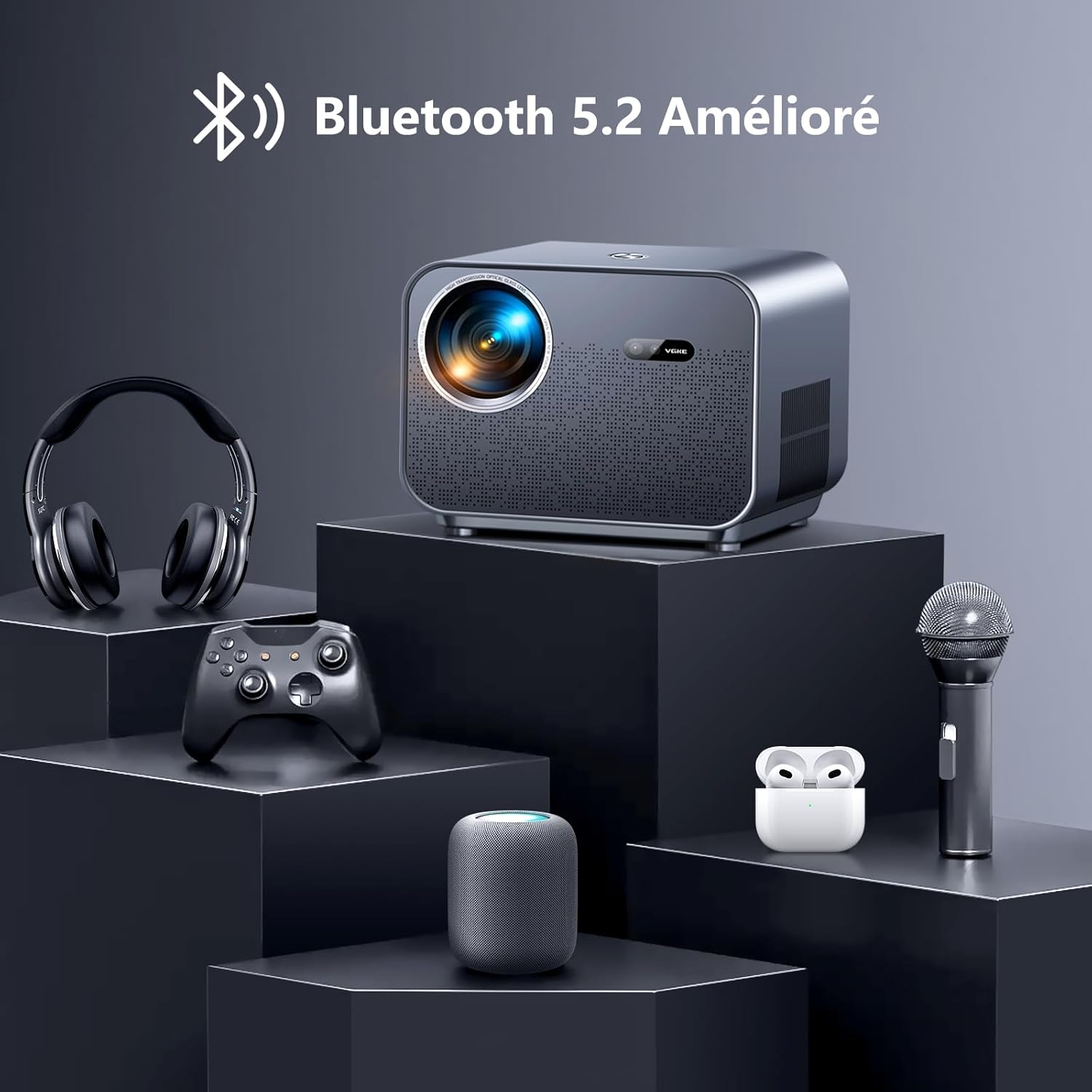 Vidéoprojecteur LED Full HD 1080p, 900 ANSI Lumens, WiFi 6 et Applications de Streaming Intégrées