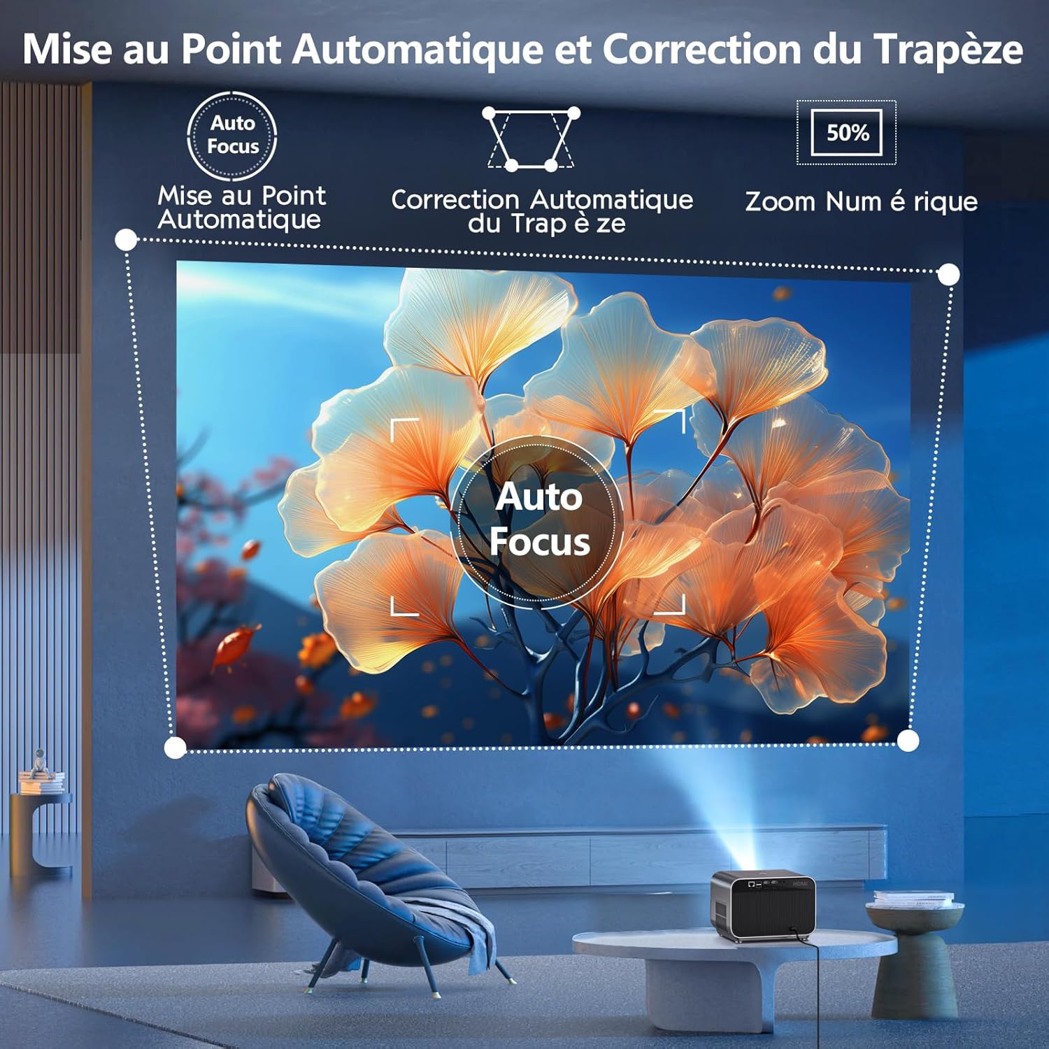 • Mise au point et correction trapézoïdale automatiques