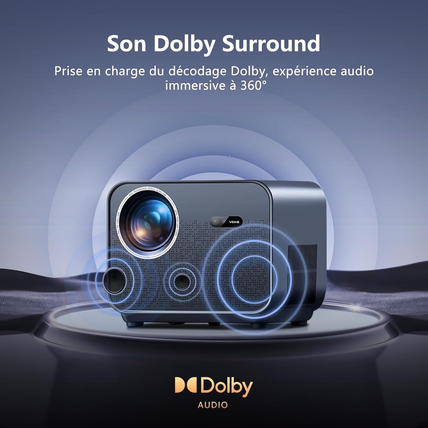 Notre vidéoprojecteur embarque un système sonore compatible avec le décodage Dolby Audio. Les haut-parleurs internes restituent un son clair et équilibré pour accompagner vos sessions de visionnage. Le traitement numérique du signal optimise la clarté des dialogues lors de la lecture de films. Notre conception acoustique interne minimise les vibrations tout en maximisant la diffusion spatiale du son dans la pièce.