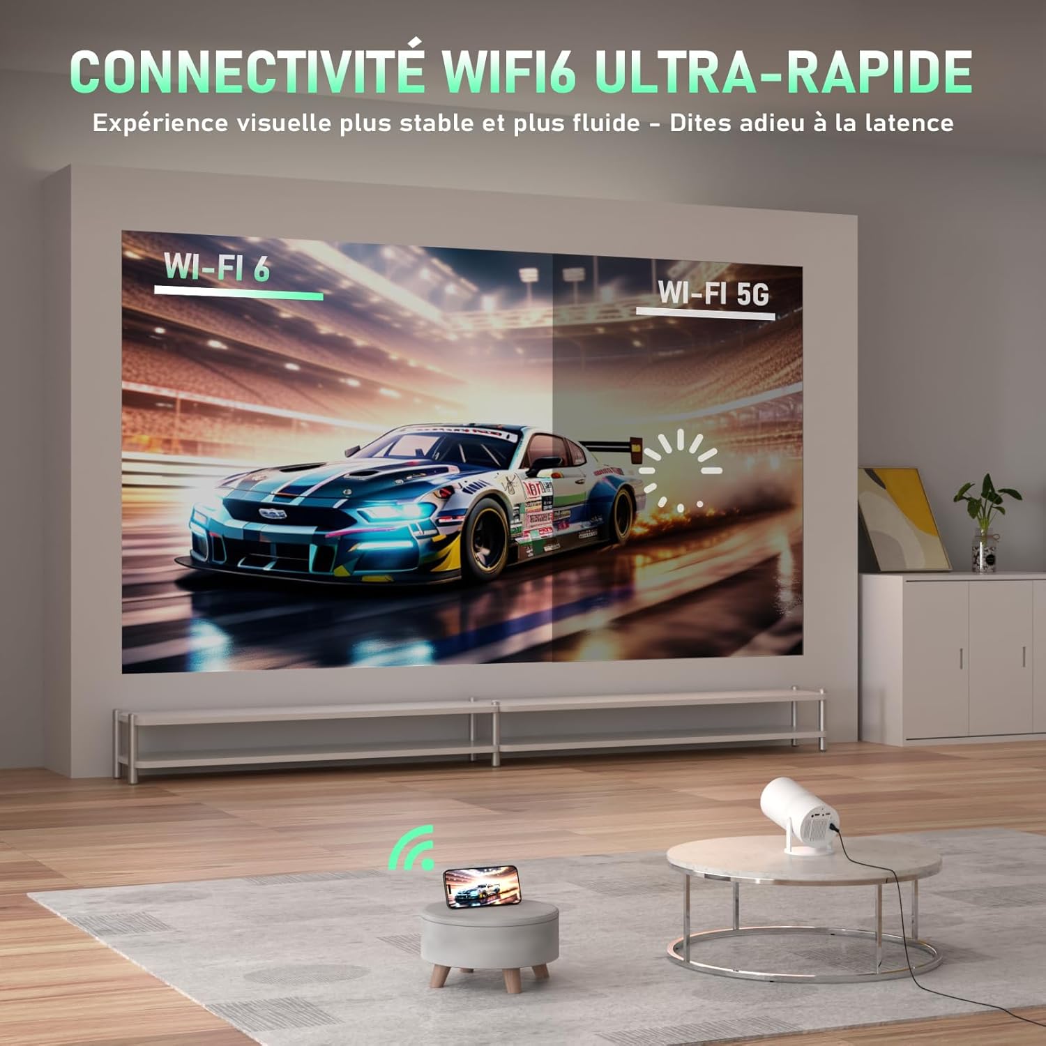 Vidéoprojecteur Full HD 1080P LCD Portable avec WiFi 6, Bluetooth 5.2 et Support Rotatif 210°