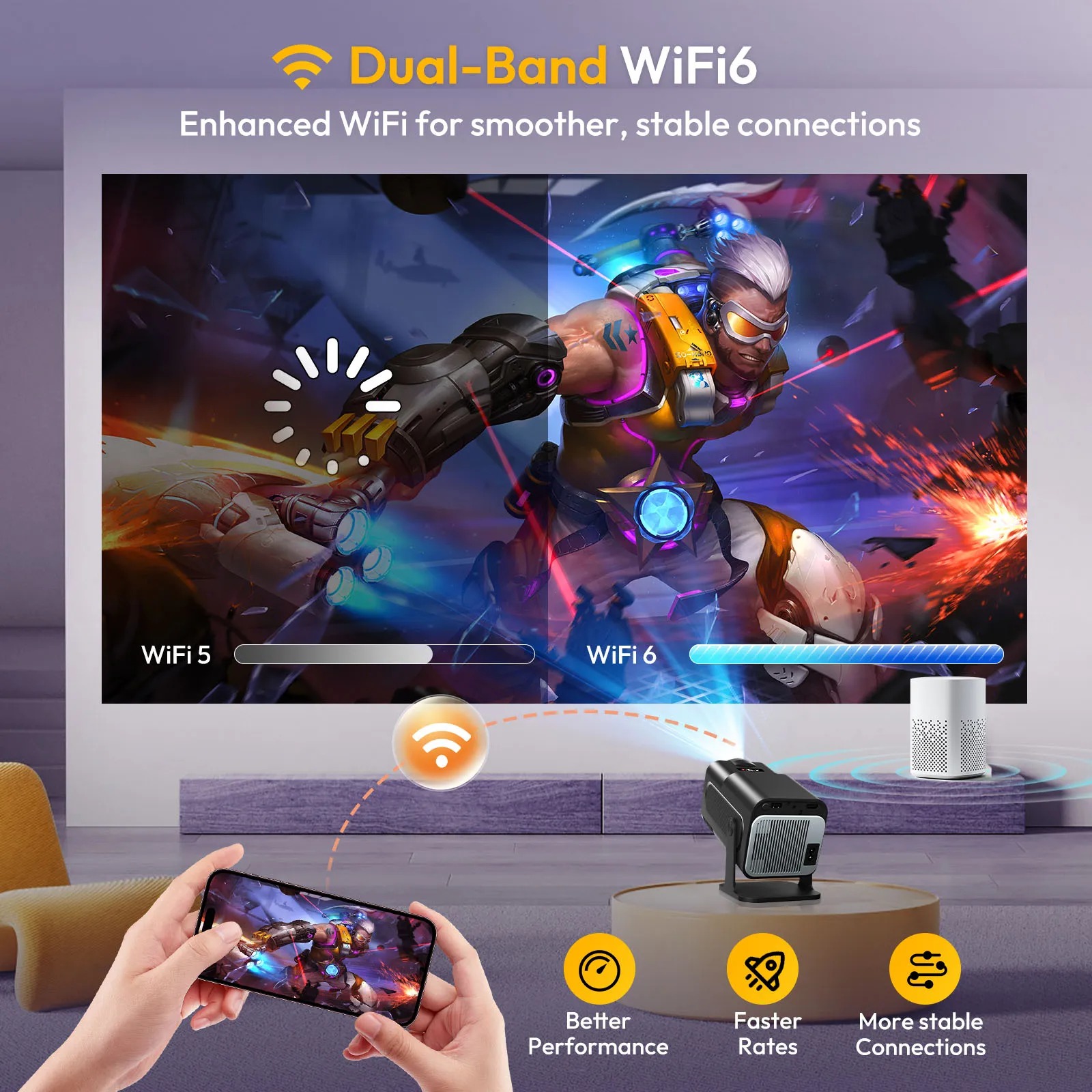 Le système d’exploitation Android 11.0 intégré transforme notre projecteur en une plateforme autonome gérée par télécommande. Cette configuration matérielle supporte les exigences techniques des jeux vidéo modernes grâce à une gestion fluide des flux vidéo. Le format portable et la possibilité de montage au plafond offrent une polyvalence d’usage pour toutes les configurations de pièces.