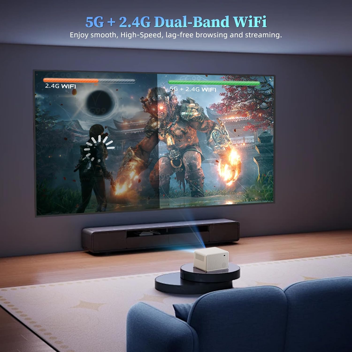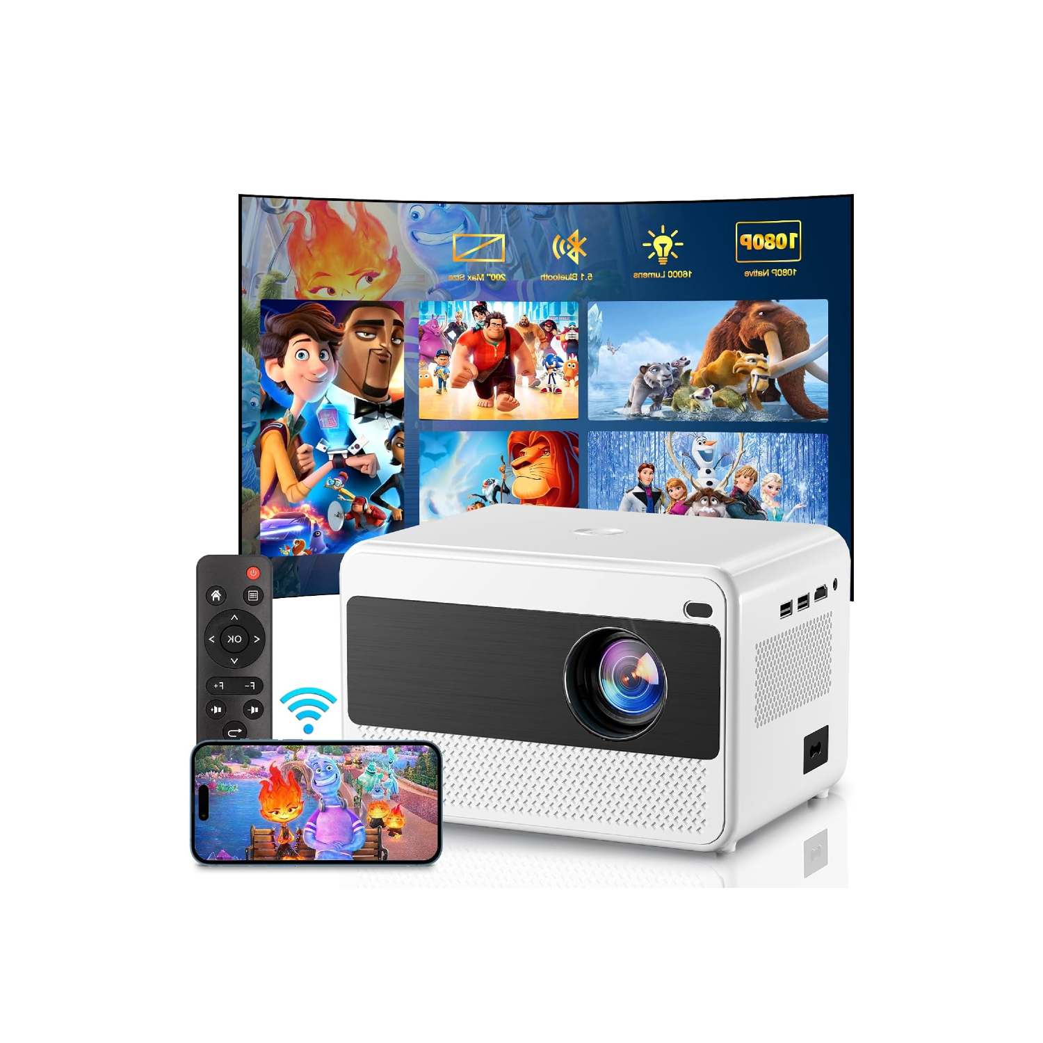 Vidéoprojecteur Full HD 1080P Natif, 16000 Lumens, LCD/LED avec WiFi 5G et Bluetooth