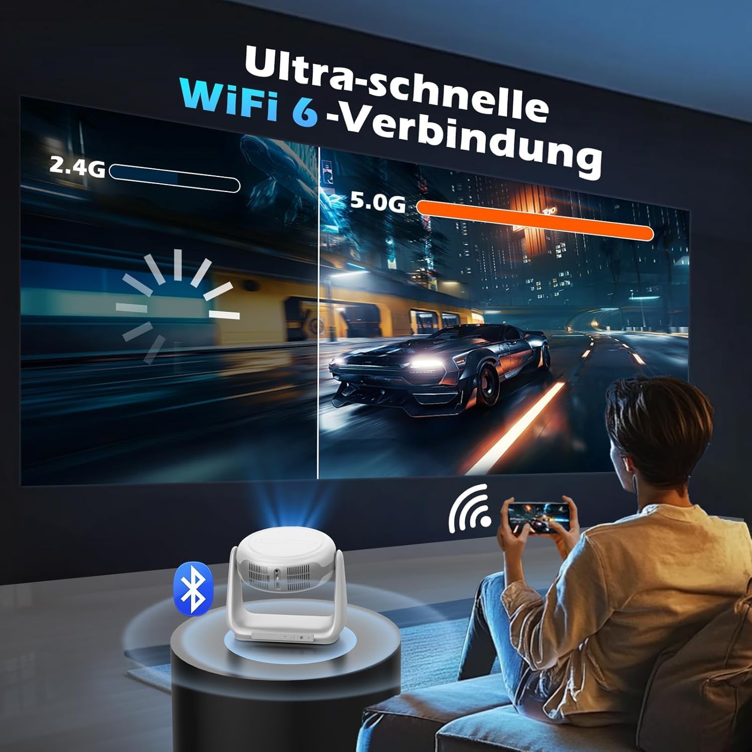 Vidéoprojecteur Portable LED Full HD 1080p avec Support 4K, Batterie Intégrée et Connectivité WiFi 6