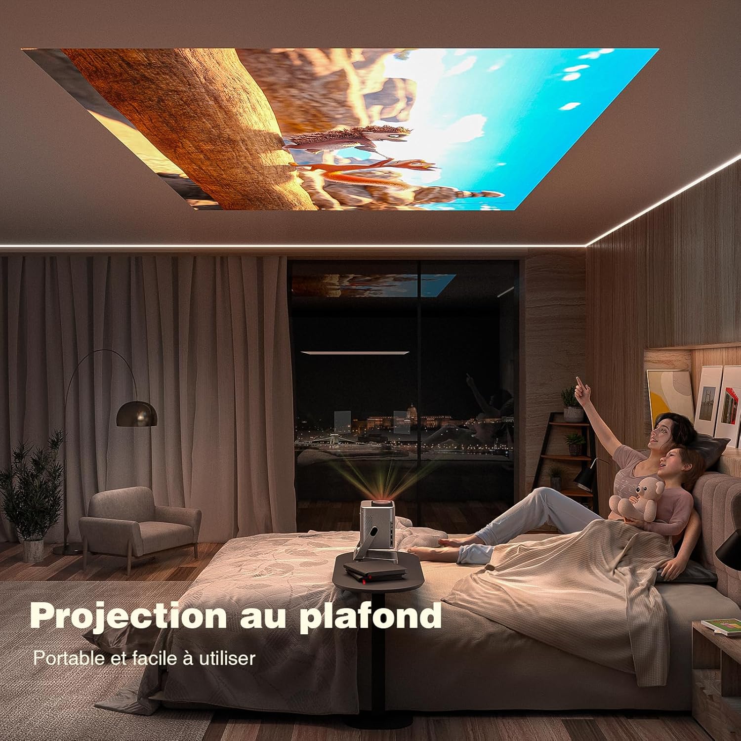 Projecteur LCD Full HD 1080p 30000 Lumens avec Support 4K et Projection Plafond 180° et Autofocus 6D