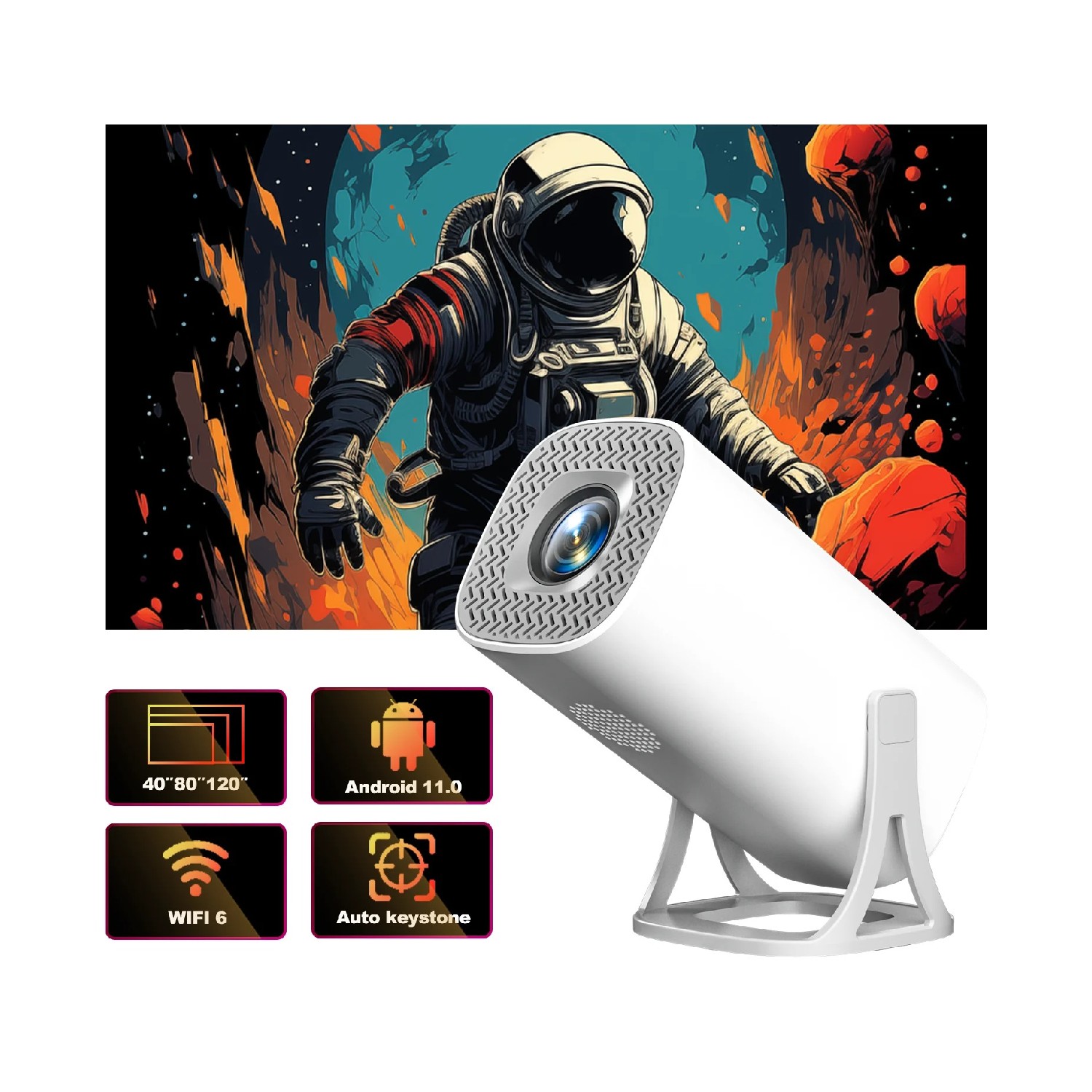 Vidéoprojecteur LCD 720P Android 11 Luminosité 120 ANSI avec Correction Trapézoïdale Automatique