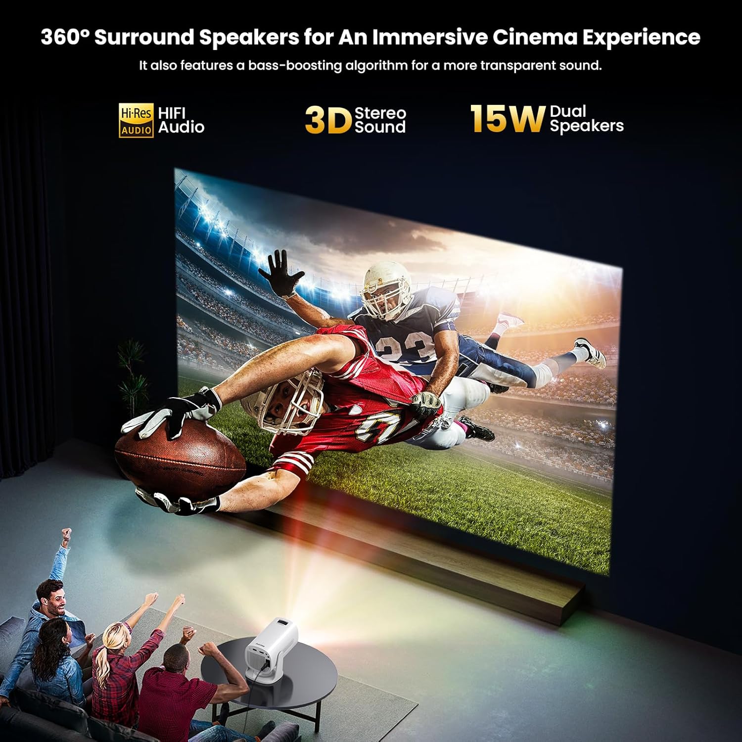 Doté d’une résolution Full HD et du WiFi6, notre Vidéoprojecteur Rotatif garantit une image fluide jusqu’à 200 pouces de diagonale. Sa compatibilité HDMI et ses modes de lumière ambiante en font un outil polyvalent pour le divertissement domestique. Notre système combine une luminosité de 3000 lumens avec une correction trapézoïdale efficace pour une expérience cinéma simplifiée.