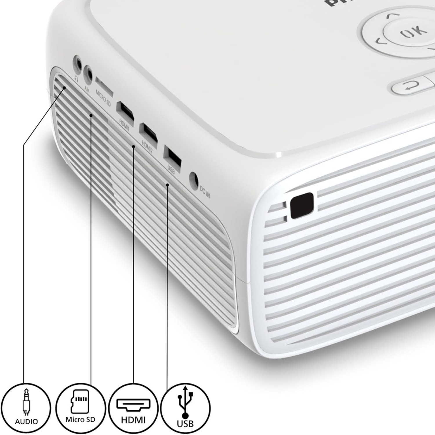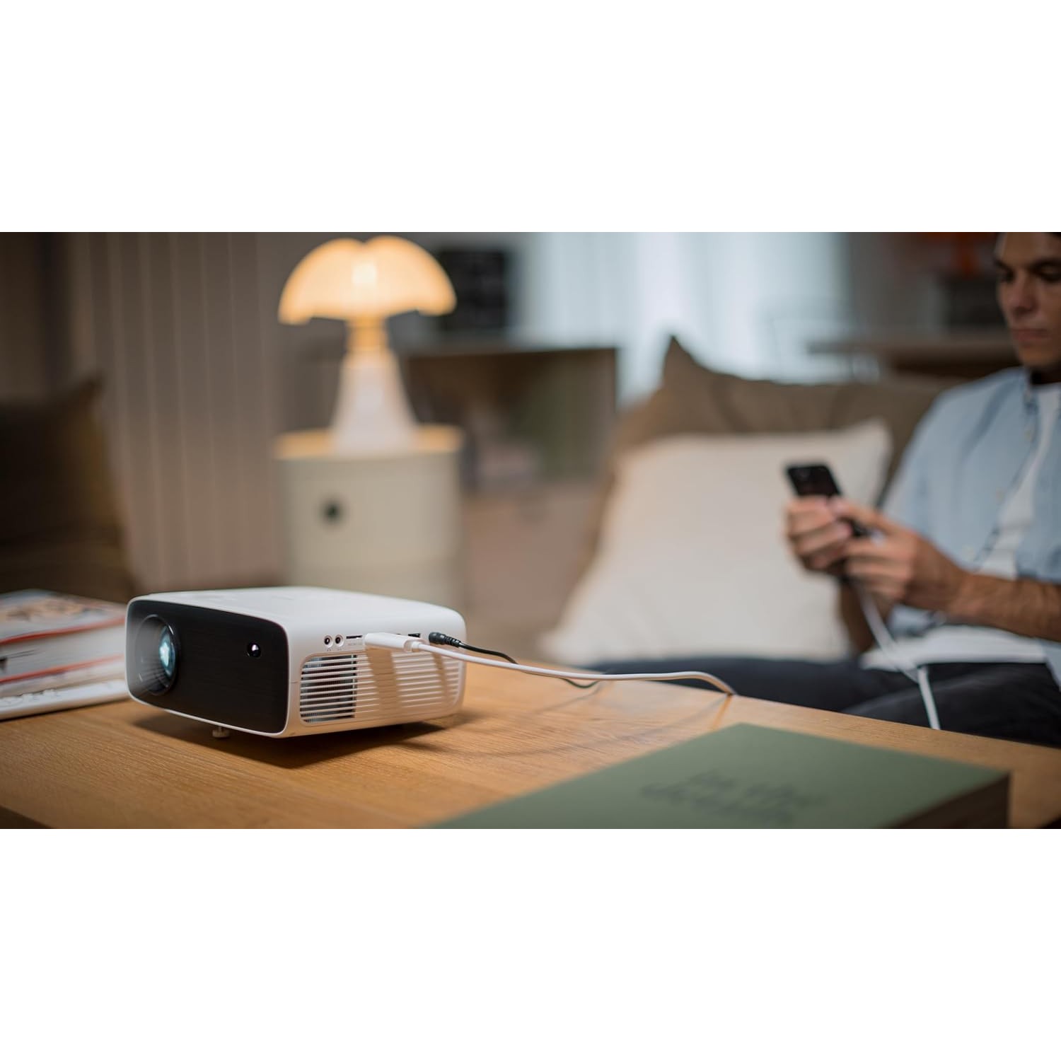 Le système audio intégré permet une restitution sonore adaptée aux contenus multimédias standards. La présence d’une sortie jack 3,5 mm autorise la connexion d’enceintes externes pour une configuration audio plus avancée. L’ensemble est optimisé pour accompagner les projections vidéo avec une restitution sonore cohérente dans un environnement domestique.
