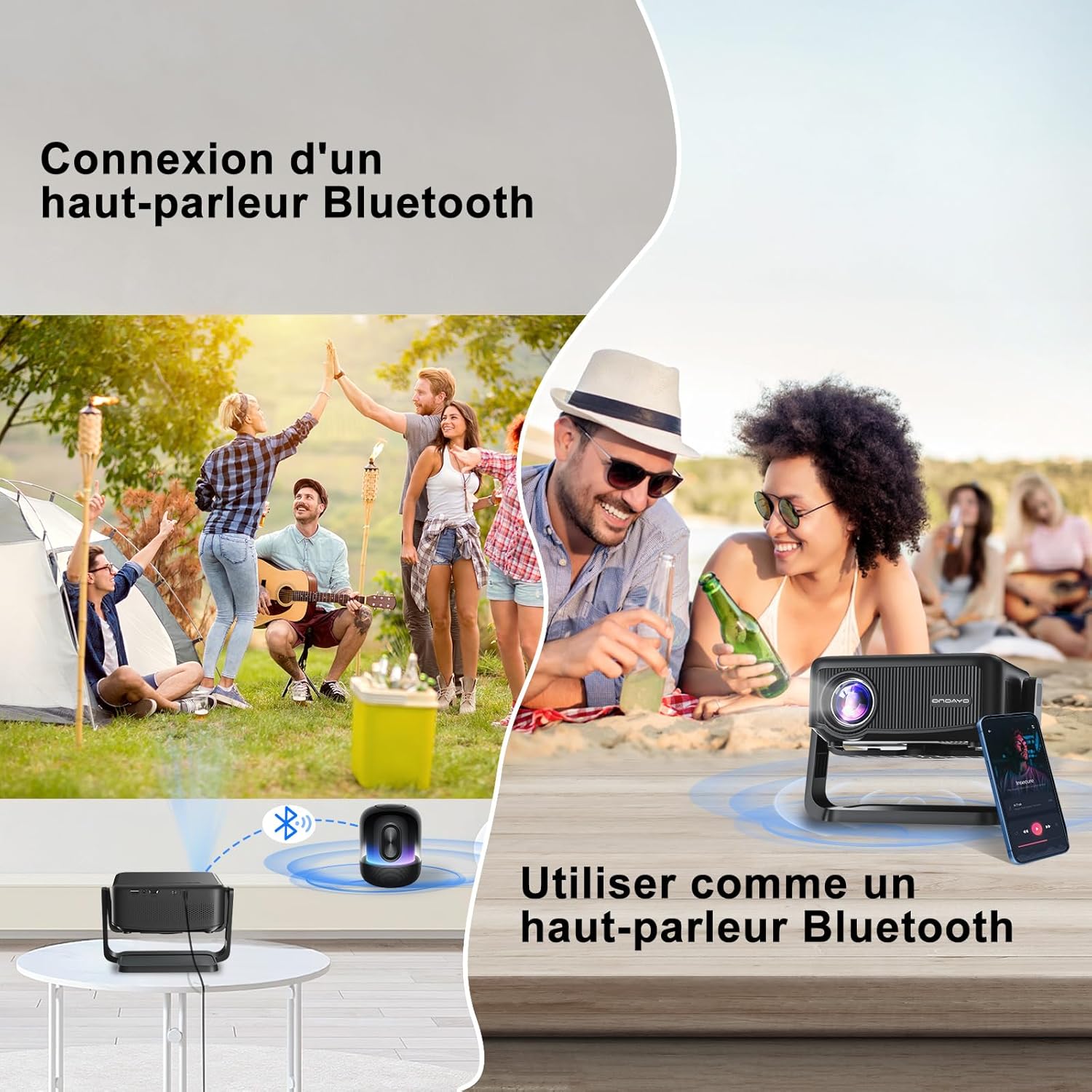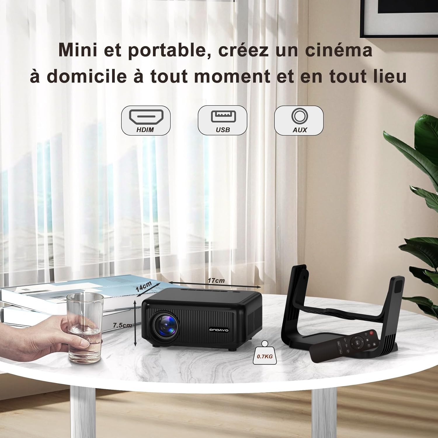 Vidéoprojecteur LED Full HD 1080P Natif, 19000 Lumens et Support Rotatif à 360 Degrés