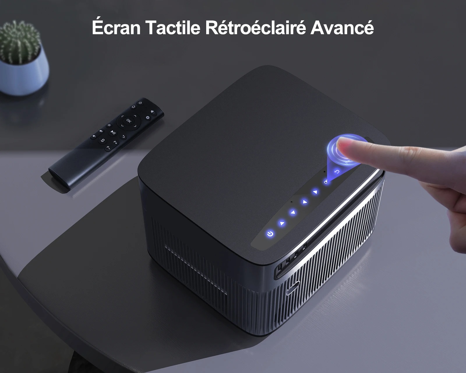 L’appareil dispose de boutons tactiles sur sa surface supérieure pour une navigation intuitive dans les menus de configuration. Notre système inclut une fonction de mise au point automatique ainsi qu’une correction trapézoïdale automatique s’activant en trois secondes lors de chaque déplacement. Ces technologies assurent l’obtention immédiate d’une image rectangulaire et nette sans intervention manuelle fastidieuse.