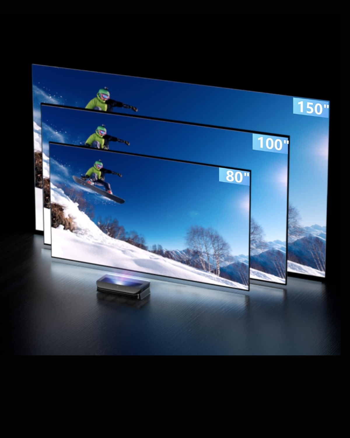 Notre appareil de projection 3D à très courte distance tire sa particularité de la combinaison rare entre une optique ultra-courte focale et une compatibilité 3D à obturation active. Là où la plupart des projecteurs exigent plusieurs mètres de recul pour atteindre une grande diagonale, celui-ci projette une image de 100 à 150 pouces depuis une distance minimale, directement placé sous l’écran. Cette configuration élimine les câbles traversant la pièce, les supports muraux complexes et les contraintes d’aménagement liées aux installations traditionnelles. Avec une paire de lunettes 3D à obturation active, il transporte le spectateur dans une profondeur de champ saisissante, que ce soit pour un Blu-ray 3D ou un contenu compatible. Notre vidéoprojecteur ultra courte focale 3D représente ainsi une solution complète pour ceux qui souhaitent reproduire fidèlement l’atmosphère d’une salle de cinéma dans leur espace personnel.