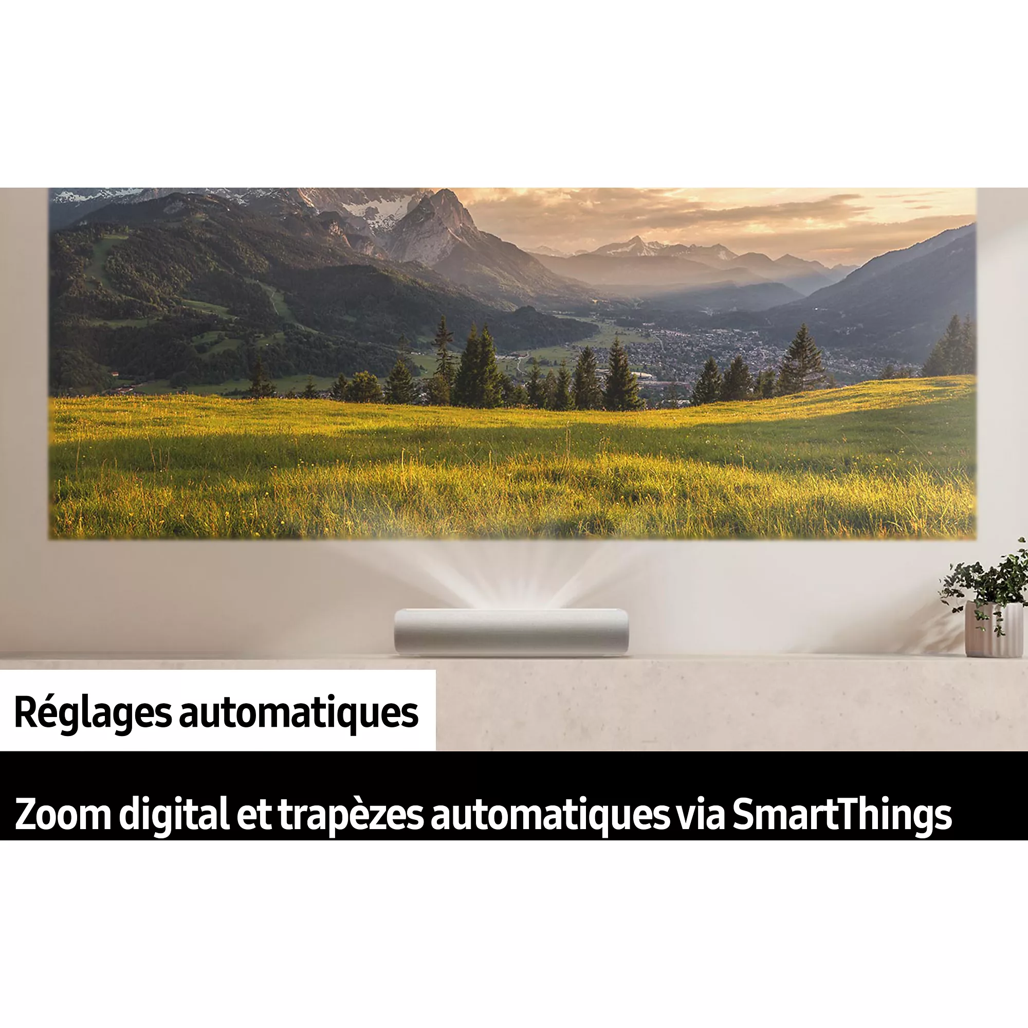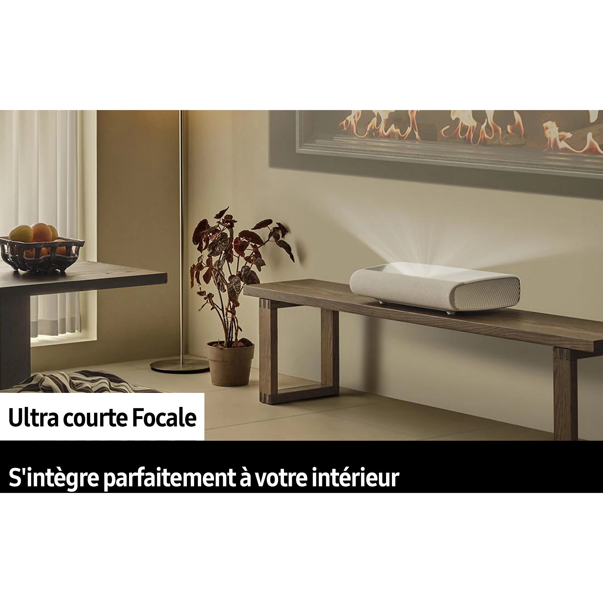 Le Vidéoprojecteur Ultra Courte Focale Plein Jour est conçu pour offrir une expérience cinéma immersive en très grande image tout en conservant une installation minimaliste contre le mur. Grâce à sa projection à ultra courte distance et sa luminosité élevée, il permet une utilisation en environnement lumineux sans perte significative de détails. Il intègre une technologie laser avancée et un traitement d’image optimisé pour garantir une restitution 4K précise. Son usage s’adapte aussi bien au divertissement domestique qu’aux contenus multimédias exigeants.