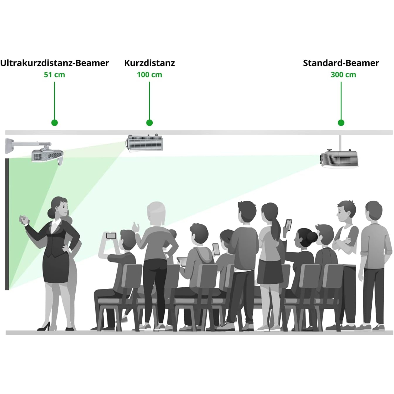 Notre projecteur à objectif fixe ultra courte focale répond directement à la problématique des installations en espace limité. Avec seulement 51 centimètres de recul, il est capable d’afficher une image allant jusqu’à 110 pouces, ce qui le rend particulièrement adapté aux salles de classe ou aux salles de conférence de taille standard. L’objectif fixe élimine toute manipulation de zoom mécanique, simplifiant ainsi le processus d’installation. Cette particularité technique évite également les ombres portées, fréquentes avec les projecteurs à focale classique lorsque le présentateur se déplace devant l’écran. La distance de projection de 0,341 mètre confirme les performances exceptionnelles de cet appareil dans les configurations les plus exigeantes.