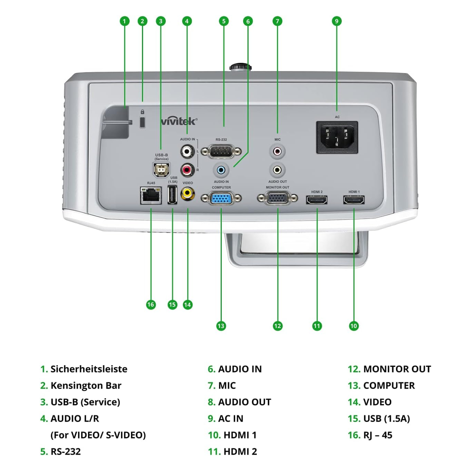 Notre appareil de projection professionnel à ultra courte focale dispose d’une connectique pensée pour s’intégrer facilement dans tout environnement audiovisuel existant. Deux ports HDMI permettent de connecter simultanément plusieurs sources numériques, tandis que l’entrée VGA assure la compatibilité avec les équipements plus anciens. Un port USB facilite la lecture directe de contenus ou la mise à jour du firmware, et le port Ethernet ouvre la voie à une gestion réseau centralisée. La prise en charge de protocoles de contrôle tels que Crestron RoomView permet une surveillance et une administration à distance, particulièrement utile dans les établissements disposant d’un parc de projecteurs important. Cette richesse de connectique assure une flexibilité maximale lors de l’intégration dans des infrastructures audiovisuelles complexes.