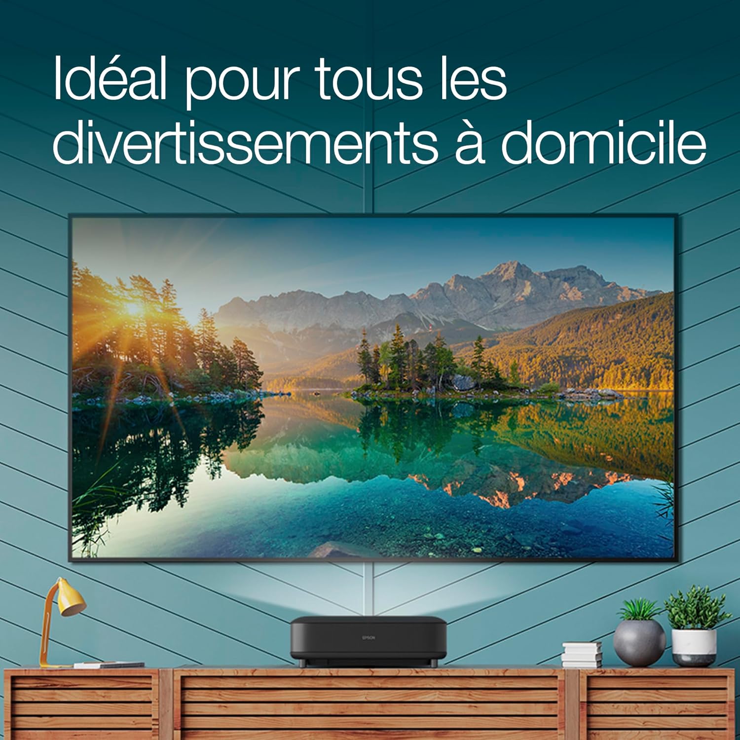 Notre projecteur à focale extrêmement courte redéfinit la notion d’espace dans votre pièce de vie. Grâce à un ratio de projection compris entre 0,25 et 0,62, il suffit de le positionner entre 30 et 50 centimètres du mur pour obtenir une image allant de 60 à 120 pouces en diagonale. Cette particularité en fait un équipement idéal pour les espaces où un projecteur classique ne pourrait tout simplement pas fonctionner. La technologie 3LCD associée à une source lumineuse laser garantit une restitution fidèle des teintes, sans effet d’arc-en-ciel ni dégradation des couleurs dans le temps. Vous profitez ainsi d’une projection stable, uniforme et visuellement saisissante, quelle que soit la taille d’image choisie.
