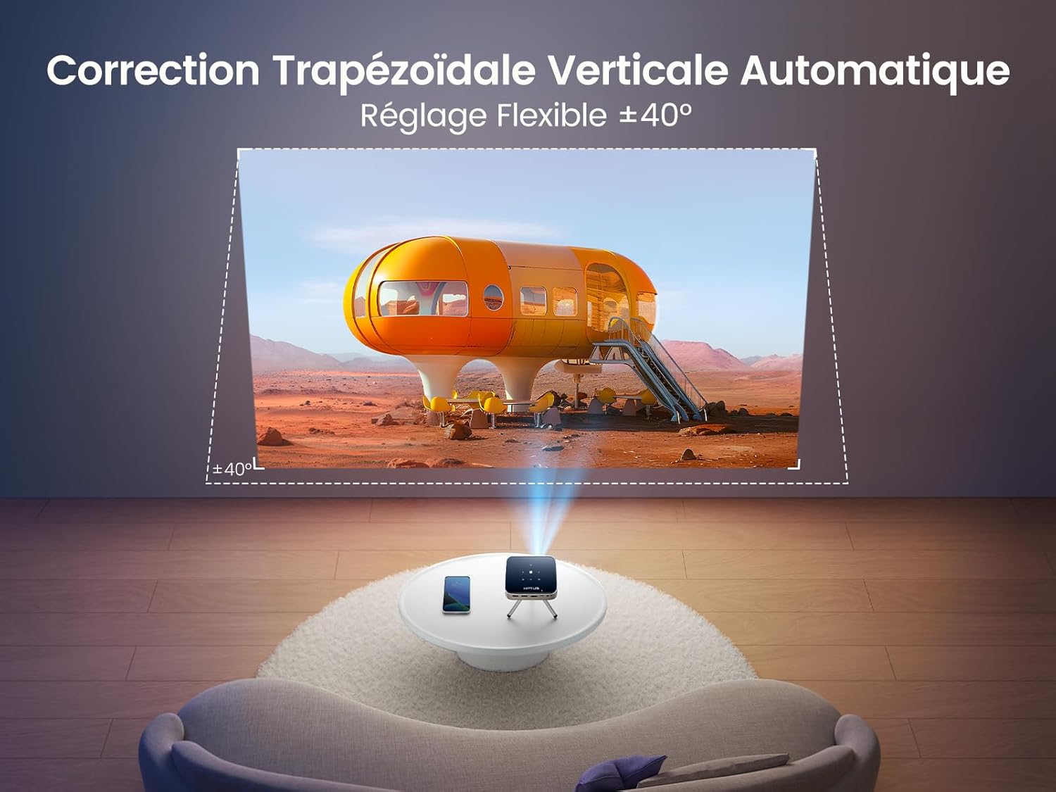 Notre solution de projection intègre la technologie DLP pour garantir une image nette et contrastée avec une résolution maximale supportée de 1920 x 1080 pixels. Ce Vidéoprojecteur Ultra Portable fonctionne sous un système Android TV, facilitant l’accès direct aux applications de streaming sans périphériques externes. Sa conception inclut une batterie rechargeable intégrée, permettant une utilisation autonome lors de vos déplacements ou pour des présentations en extérieur. L’appareil se pose simplement via un montage sur table pour une installation rapide et stable.