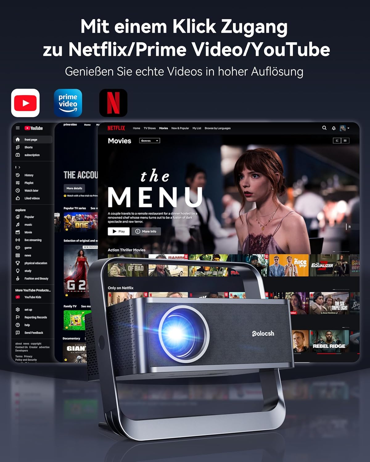 Grâce à ses 1500 ANSI Lumens et son système de correction automatique, ce modèle assure une projection nette et lumineuse en toutes circonstances. Ce vidéoprojecteur Youtube se distingue par sa compacité de 0,7 kg et sa connectivité WiFi 6 de dernière génération. L’intégration du focus électrique et du son Dolby Digital en fait un outil complet pour le home cinéma moderne.
